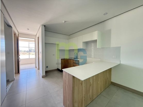 Isla con mueble inferior en melamina y sobre de cuarzo